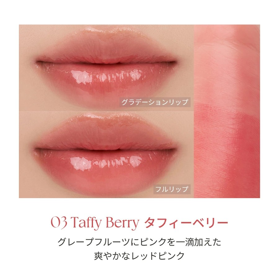 2.やわらかくとろけるようなシアーゼリーリップ<br> 3.さっぱりしたテクスチャーで乾燥することなく潤いリップに