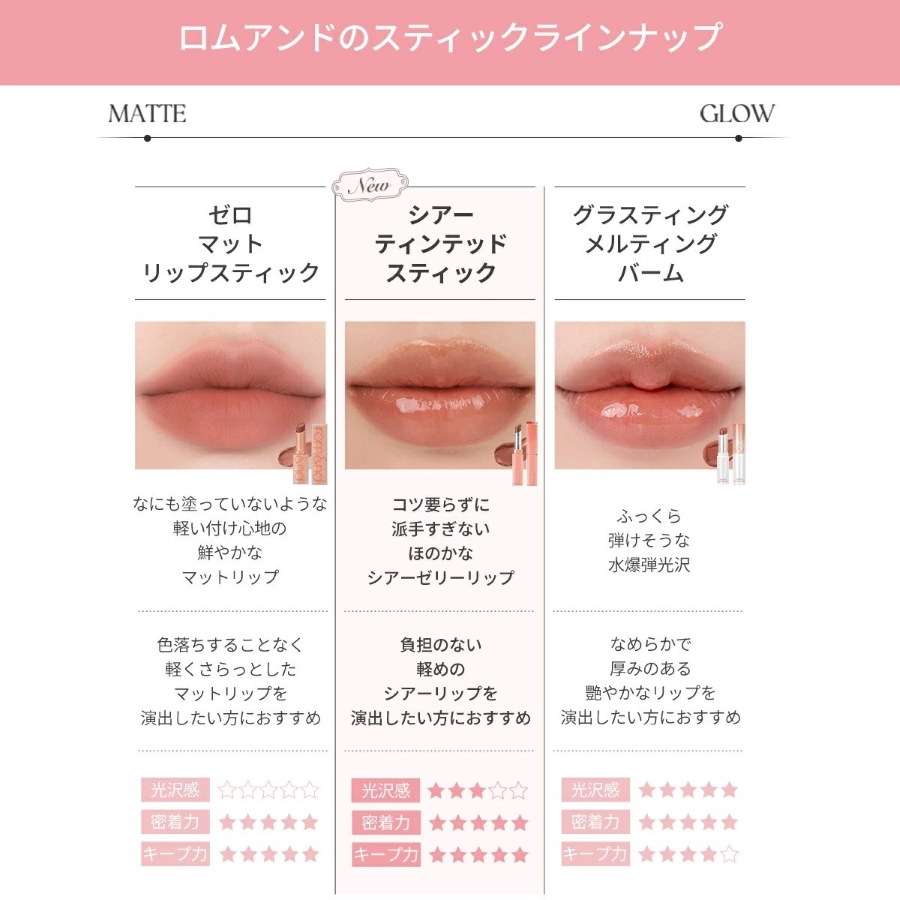 「シアーティンテッドスティック」は、桜、スイレン、バラ、蓮の4つの花から抽出したオイル配合で、乾燥しにくく塗った瞬間のツヤツヤ感を長時間持続させることが可能な優れもの。