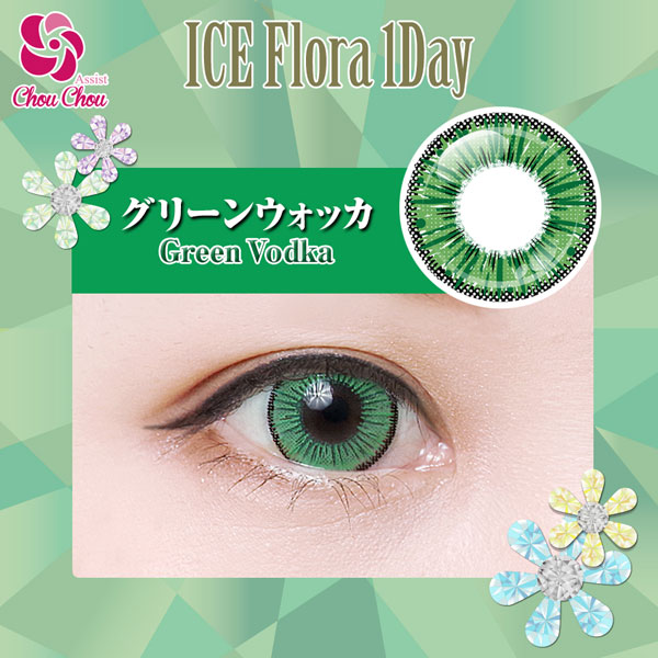 煌めく雪花のような美しくキラキラした瞳を表現できるカラコン♪。澄んだ氷のように煌めくグリーンです☆