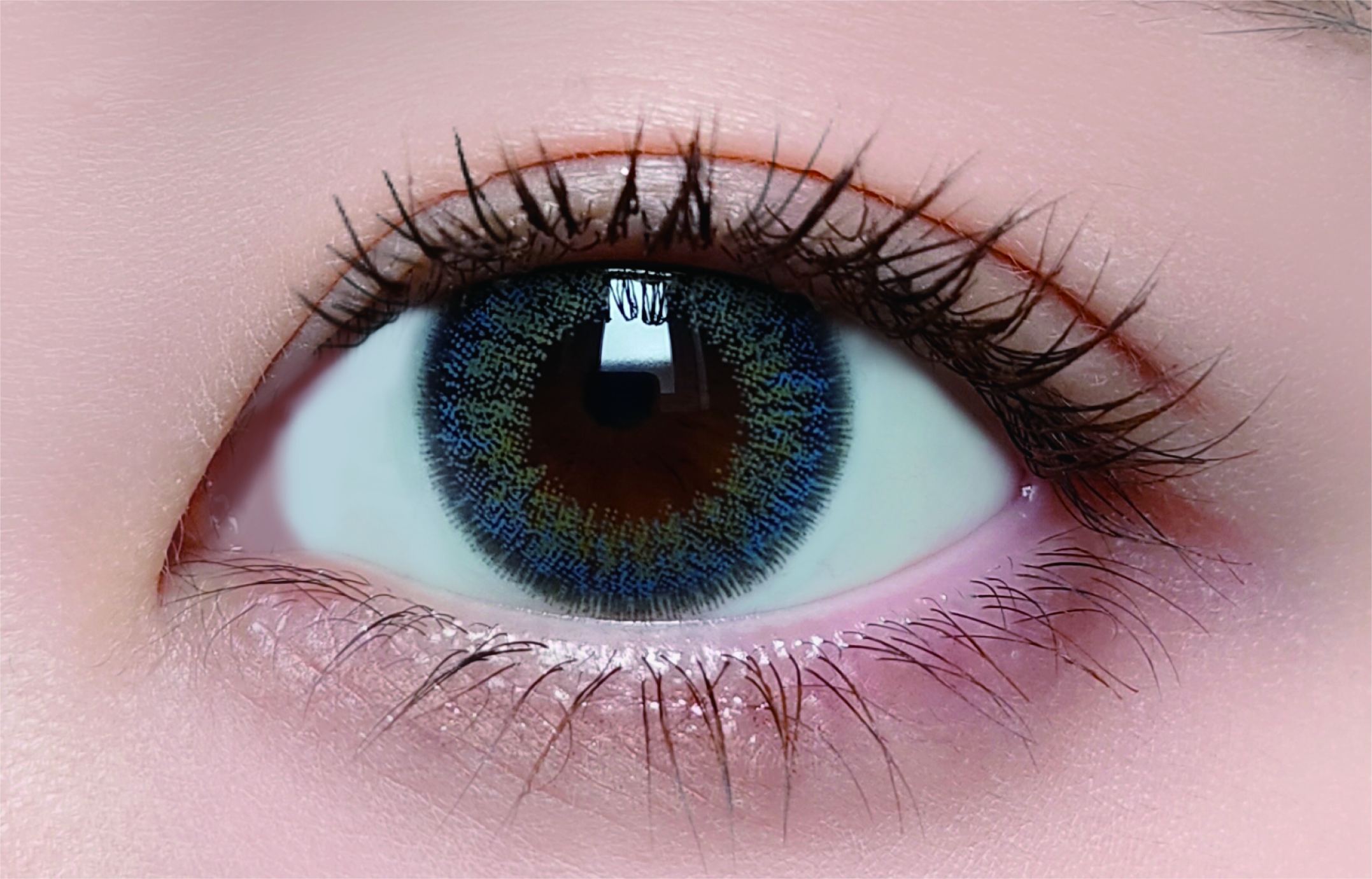 裸眼の色によって異なる発色になり自分自身に似合う青みグレーに。繊細で吸い込まれるような瞳に。