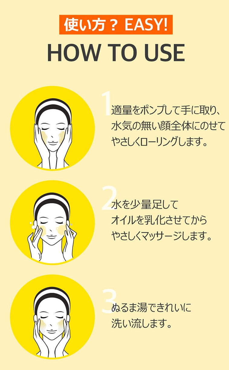 1.オイルを2~3回プッシュして濡れてない顔に伸ばしてください。