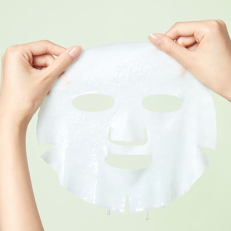 マスクシートを取り出し、目鼻口の位置に合わせて顔全体にフィットさせます。