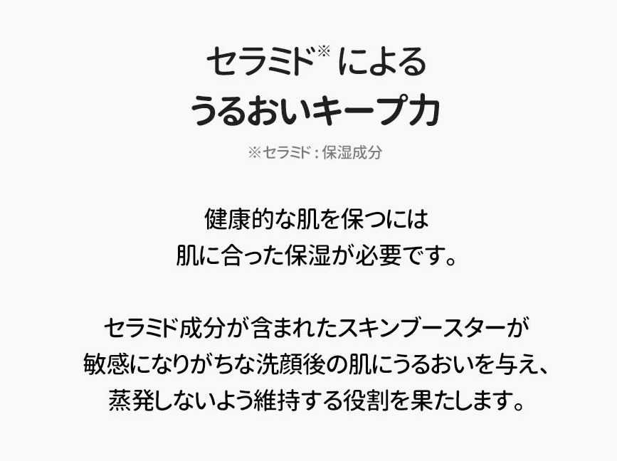 セラミドNP(保湿成分)配合成分が乾燥し荒れた肌にうるおいを与え、肌の油分・水分バランスを整えます。