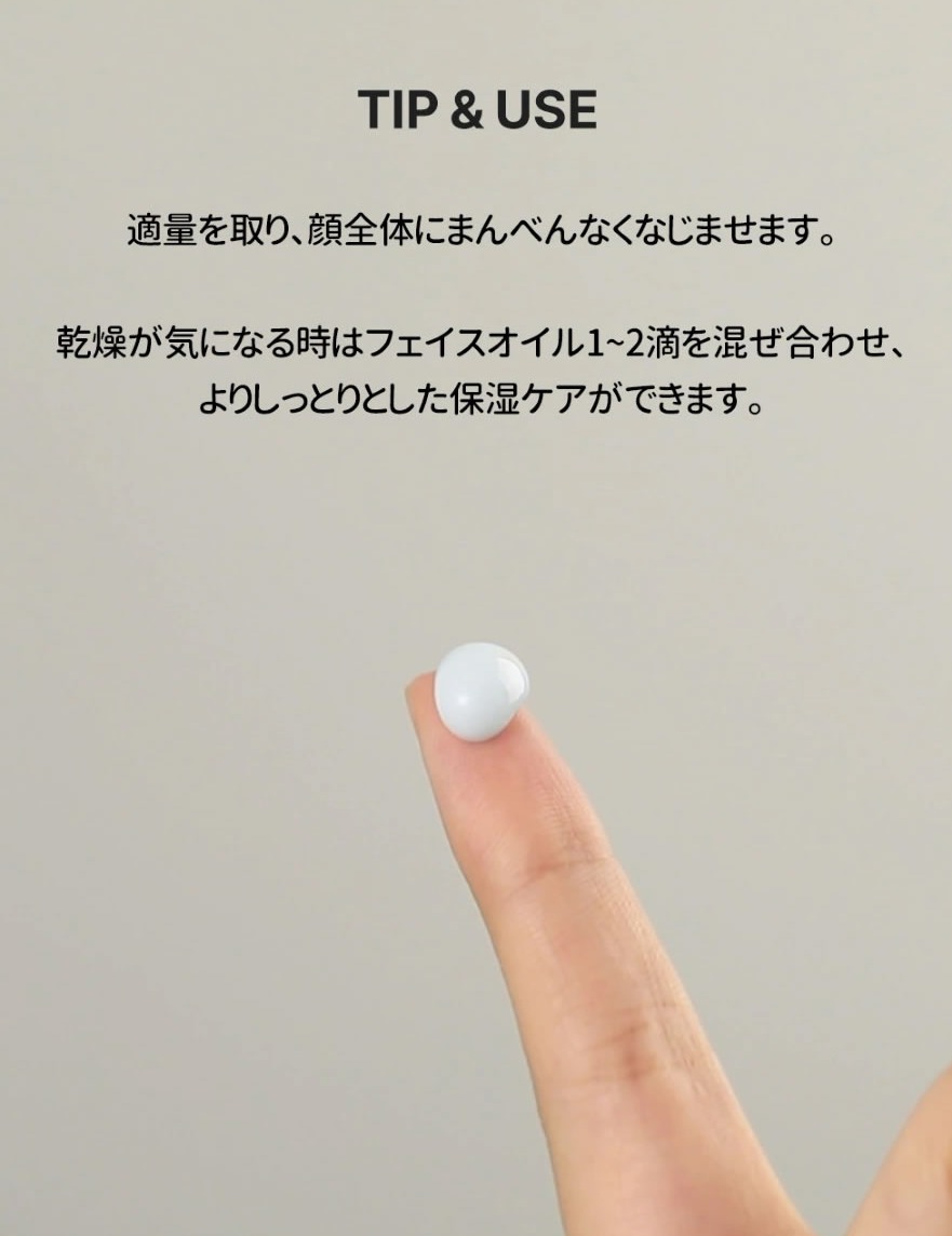 べたつきのない仕上がり肌に溶け込むようなテクスチャー