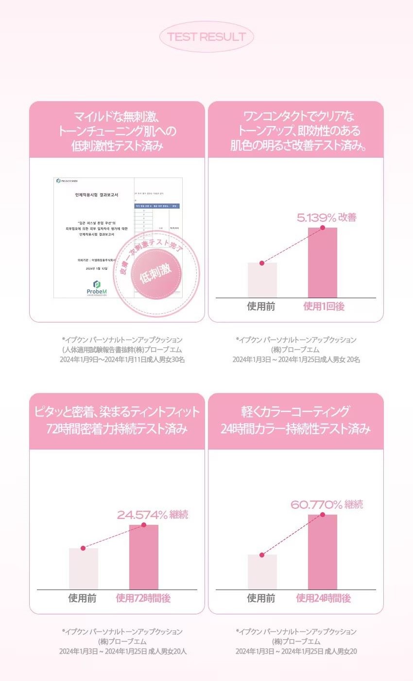 清純なピンクのトーンで、個人の肌色に合わせたトーンアップクッション。