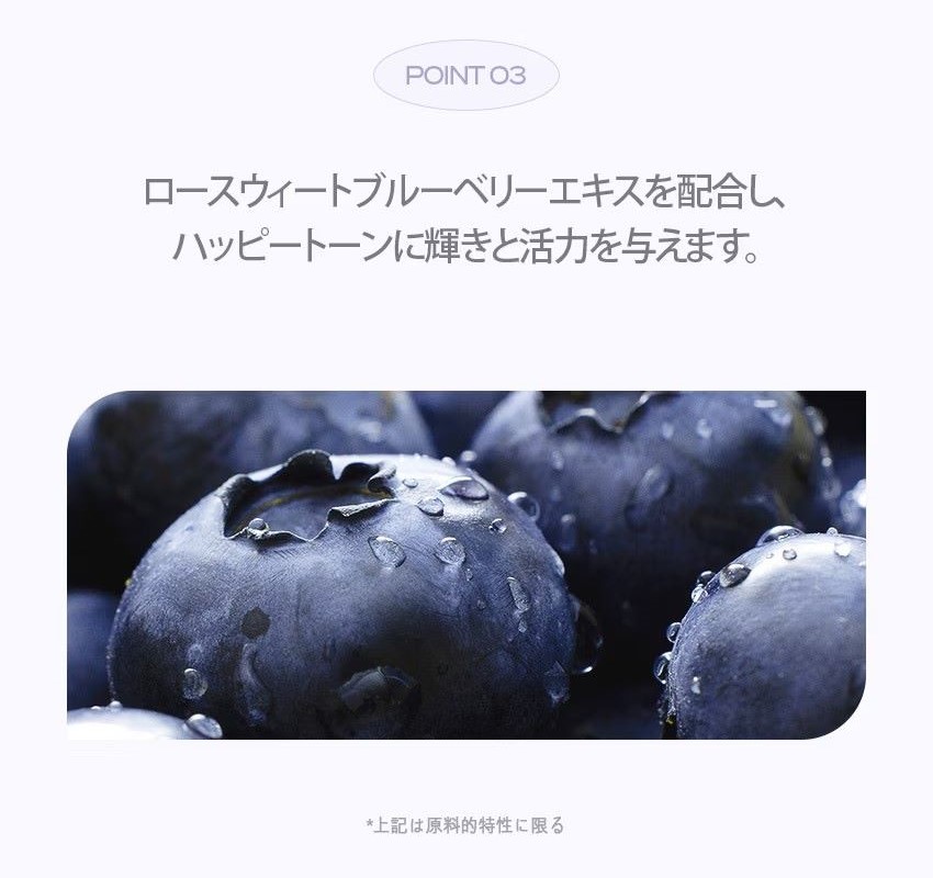 明るいラベンダーの色がくすんだトーンを補正します。ロー スウィート ブルーベリー 抽出物を含んで、肌色に輝きと生命を与えます。