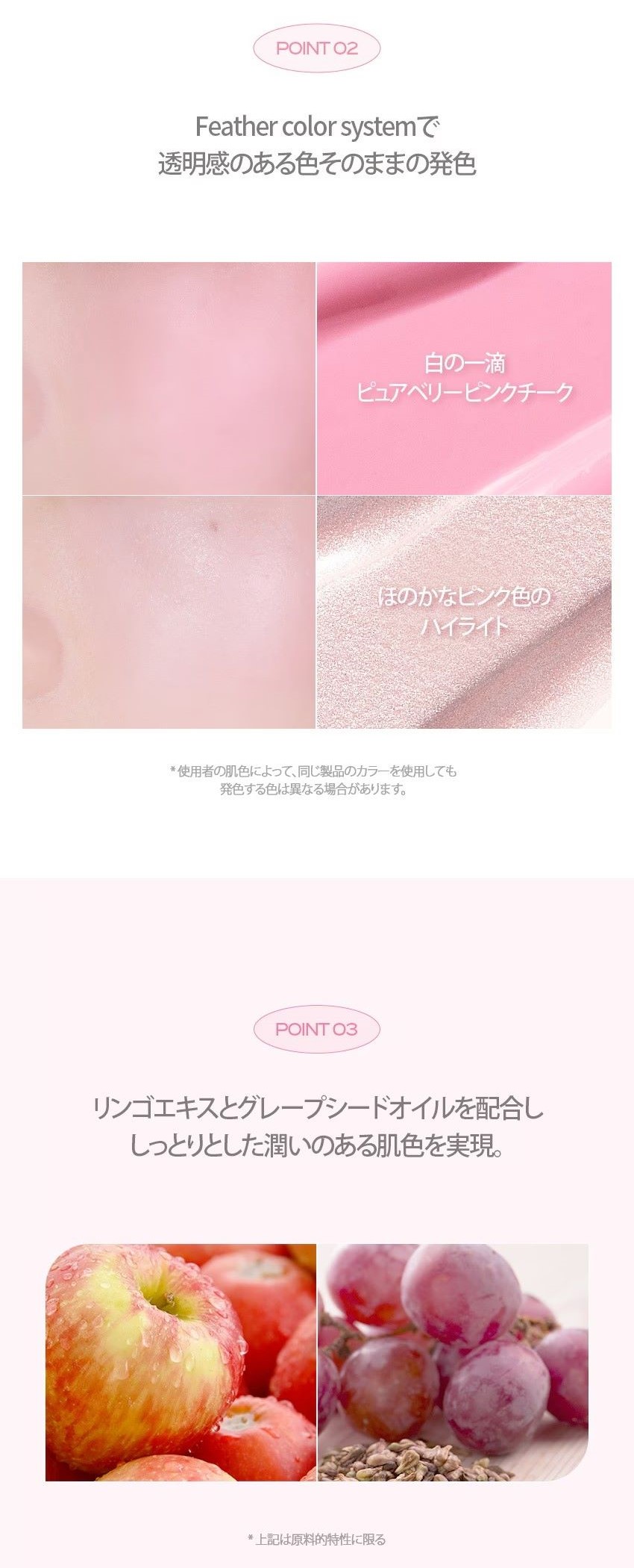 一滴の白さ、清らかなベリーピンクのチークと、ほのかなピンク色のハイライター