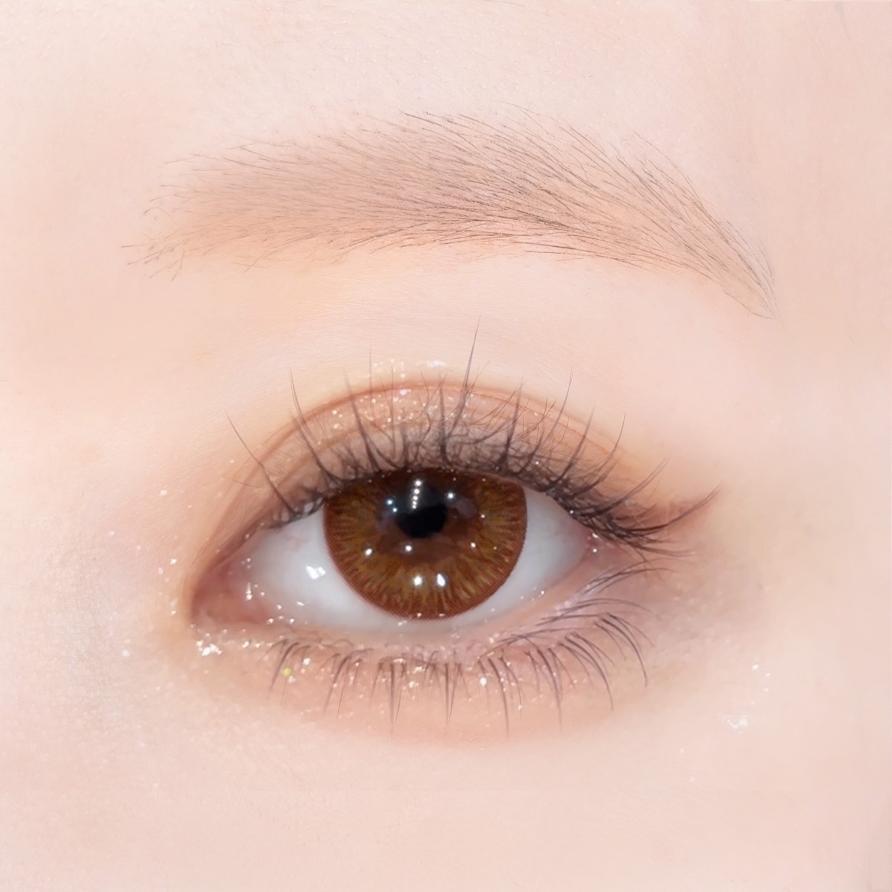 繊細ドットのフチとショコラブラウンでくっきりデカ目に。瞳馴染みの良いライトブラウンで甘さのある瞳に。