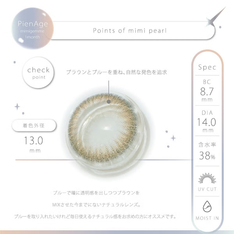 ブルーで瞳に透明感を出しつつ、ブラウンをMIXさせた今までにないナチュラルレンズ。