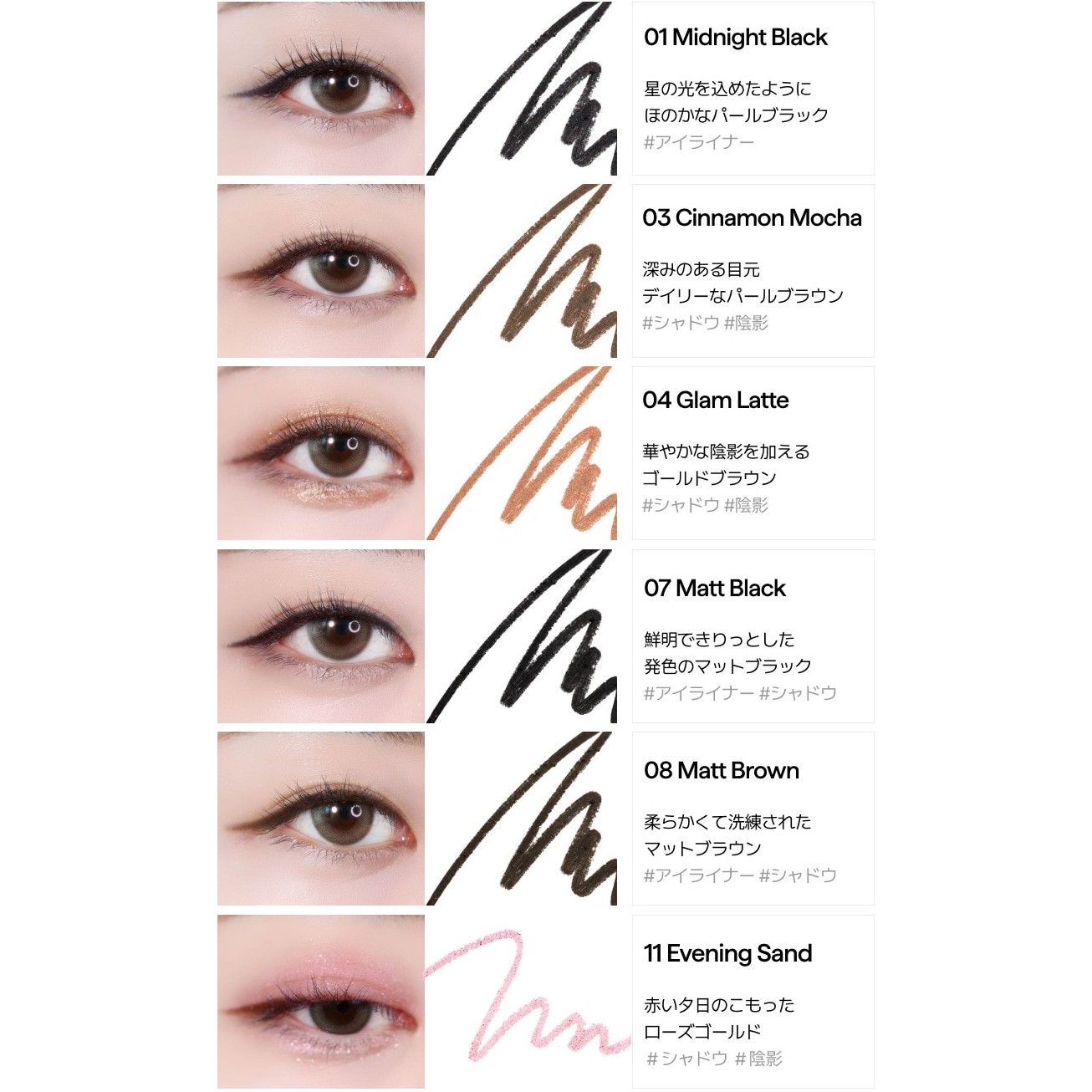 なめらかなつけ心地と汗や水、皮脂にもにじみにくいマルチプルーフで、長時間くっきりと輝く目元を演出します。