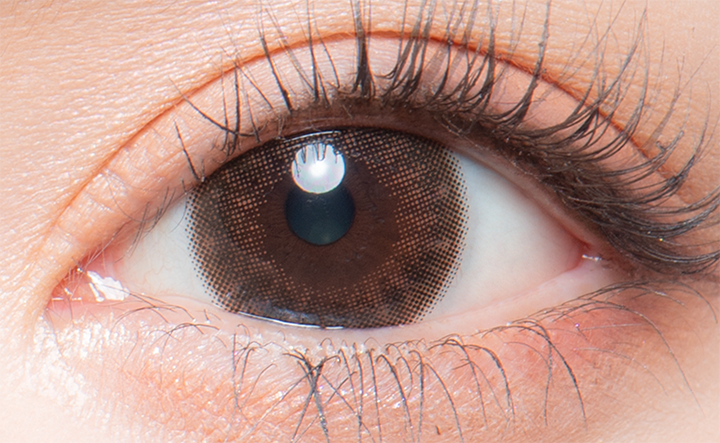 定番ナチュラル系レンズながらもダークブラウンが大人な瞳を演出。